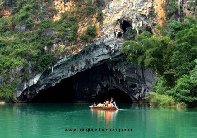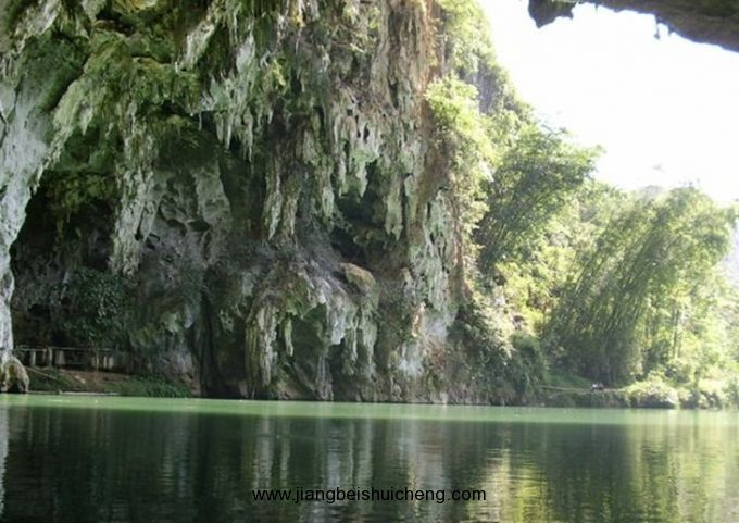 百鳥巖,位于廣西巴馬瑤族自治縣甲篆鄉(xiāng)烈屯西北面的漠齋山下,別名龍虎洞。因洞內燕子棲集,蝙蝠掠飛,又名百鳥洞。盤陽河自吉屯白熊洞潛入山下,形成1000多米的伏流暗河后,在此洞流出。洞口寬50米,一石壁把洞口分成兩個略呈三角形的左右洞口。左側洞口寬40米,高16米,兩洞口內側相通。洞深500米,蜿蜒曲折,直通與白熊洞一山之隔的拉類坳下的一個側洞口。洞中水平如鏡,深不可測,寬處約40米,窄處10米,從洞口行舟至300米轉折處,距水面30米處有一圓形天窗,山坳之光照到水面,猶如舞臺上的光束,色彩紛呈,近右側洞口處有沙灘,版權所有山東聊城聊之旅國際旅行社有限公司,轉載必究!可停靠舟船。沙灘右側是一塊30多平方米的石臺,臺面深溝淺窩,坑坑坎坎,石臺一側,洞壁雪白,可攀援其中。有石鷹、石柱、石幔、石觀音菩薩等,百態(tài)千姿,令人目不暇接。石臺的周圍有仙女梳妝、海螺石,石螺對面有石桌、石缸和石松果等。側面洞口外香椿林下野花艷目植被繁衍,把洞口點綴得幽靜雅致。洞中歧洞叉水道不可勝數(shù),密如蜂房,不知所向,整個洞仿佛一座裝飾華麗、景幻莫測的水下龍宮。其奇特的景象似桂林蘆笛巖,又因非乘舟不能游覽,游人贈予“水上蘆笛巖”的美譽。