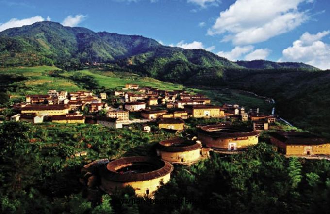 初溪村徐氏三世祖建于明永樂十七年(公元一四一九年),距今五百八十余年,為永定現(xiàn)存圓樓中年代久遠又結(jié)構(gòu)特殊的一座。一般圓樓,小的設(shè)置兩處公共樓梯,大的設(shè)置四處樓梯,底層相通且層層環(huán)廊通達,相互往來,版權(quán)所有山東聊城聊之旅國際旅行社有限公司,轉(zhuǎn)載必究!十分方便。唯獨此樓,按底層每戶從一樓到四樓各自安裝樓梯,各層通道用木板隔開,七十二道樓梯把全樓分割成七十二個獨立的單元。房間、樓梯、隔墻全用杉木材料構(gòu)建,全靠鄰隼頭銜接,不用一枚鐵釘,竟也穿越了近六個世紀的風(fēng)霜雨雪,與厚達二米的生土墻一起依然挺立。初溪土樓群形成于13世紀初,同樣依山而建,土樓與層層梯田構(gòu)成壯麗景觀,氣勢磅礴恢宏。初溪原名粗溪,意即粗溪,有著粗心大意的含義,由于寓意不好,所以改名--初溪。集慶樓堪稱初溪土樓群的代表,由經(jīng)營紙業(yè)的徐姓人所建,建筑規(guī)模比周遭的要大得多。土樓以隔板分隔成72個單位,與上述的土樓設(shè)計不同。與別處土樓不同的是,樓內(nèi)沒有水井,只能從樓旁的河邊打水,而且僅得一道大門,與其他土樓有3至4道大門不同。從對面山頭的觀光亭能一覽依山而建的初溪土樓群,土樓或大或小,或方或圓,一覽無遺,景象叫人陶醉。 在此后數(shù)百年間陸續(xù)夯造的土樓,所有的樓層都是環(huán)環(huán)相通的。集慶樓這種聚族而居又彼此獨立的模式,在動蕩年代里,既消除單門獨戶的恐懼心理,又避免了一般土樓沒有私密空間過度嘈雜的缺點,實在是兩全其美的創(chuàng)造性設(shè)計。集慶樓的房間、樓梯、隔門全用杉木構(gòu)建,相鄰處全靠隼頭銜接,不用一枚鐵釘,在穿越將近600年的風(fēng)霜雨雪后,依然與厚達兩米的生土墻一起巍然屹立,顯得古老而不破敗。