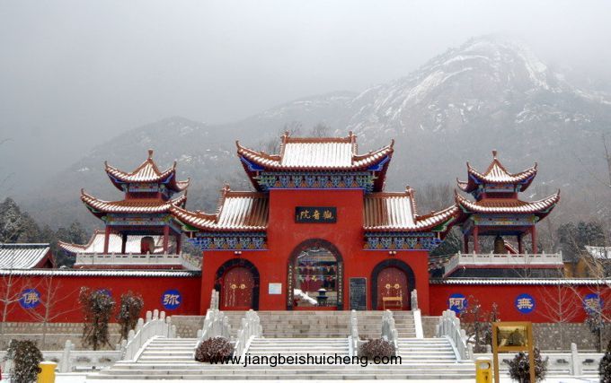 谷寺周圍松竹繁茂,有千年銀杏、異蘿奇松、獅子搶球、千古石、仙人榜、靈錫泉等景和缽盂、眉毛、羅漢、香爐諸峰。從東路上山的游客可在此乘索道去往北海景區(qū)。