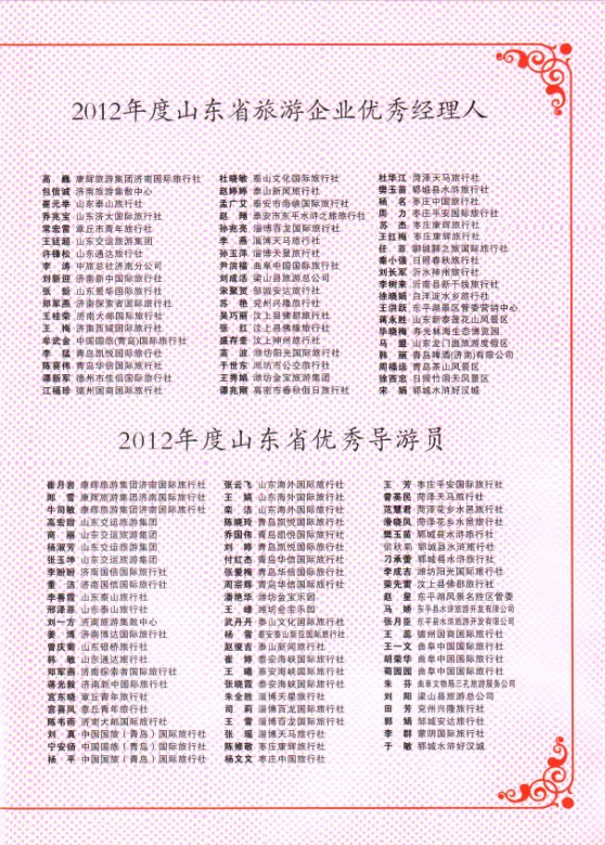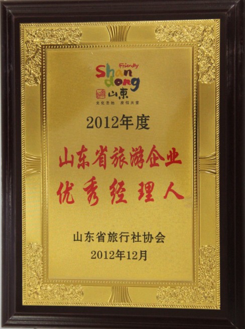 【網(wǎng)宣部】熱烈祝賀聊之旅國(guó)際旅行社董事長(zhǎng)助理任菲獲得2012年度山東省旅游企業(yè)優(yōu)秀經(jīng)理人榮譽(yù)稱(chēng)號(hào)!