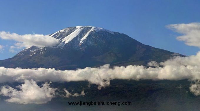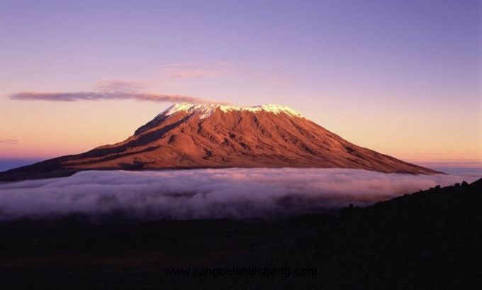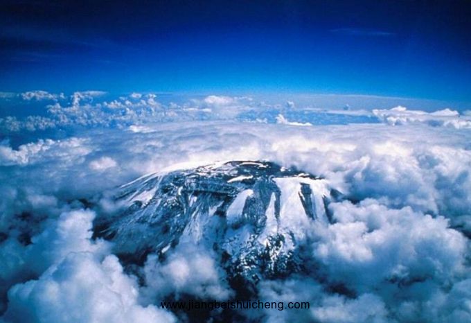 被譽為“赤道雪峰”乞力馬扎羅山位于赤道附近的坦桑尼亞東北部。在赤道附近“冒”出這一晶瑩的冰雪世界,世人稱奇??釤岬娜兆永铮瑥暮苓h(yuǎn)處望去,藍色的山基賞心悅目,而白雪皚皚的山頂似乎在空中盤旋。常伸展到雪線以下飄渺的云霧,增加了這種幻覺。山麓的氣溫有時高達59℃,而峰頂?shù)臍鉁赜殖T诹阆?4℃,故有“赤道雪峰”之稱。在過去的幾個世紀(jì)里,乞力馬扎羅山一直是一座神秘而迷人的山——沒有人真的相信在赤道附近居然有這樣一座覆蓋著白雪的山。