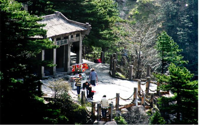 亭前有平臺,約70平方米,臺前設(shè)有石欄鐵索,游客可以憑欄飽覽西海奇景。這里面對群峰大壑,視野開闊,是觀賞黃山秀色最佳處之一。