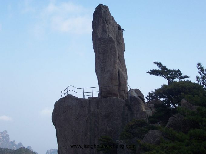 相傳,宋代有個叫單福的石匠,一生給人家造了不少橋,心想也在自己家鄉(xiāng)門口的江上建造一座,但嘆息沒有幫手。他膝下只有一女叫小姣,長得聰明美麗。她知道父親的心思.便要求參加幫助干。但那深山采石,百里運石的苦和累,小女子怎么受得了,所以單福就是不答應(yīng)。小姣跪在地上苦苦哀求,單福沒奈何,才含淚點頭。他還把三個徒弟找來幫忙,不久就干起來了。由于開山運石的苦和累實在難受,大徒弟和二徒弟先后悄悄地溜了。單福和女兒、三徒弟為修橋鐵了心,繼續(xù)風里雨里苦干著。版權(quán)所有,山東聊城聊之旅國際旅行有限公司轉(zhuǎn)載必究!但好幾年過去了,運到江邊的石頭只有一小堆.這樣累死苦死,橋也建不起來。小姣一咬牙,請人寫了“捐身修橋”四個大字,插了個草標,坐到江邊石堆旁。一連三天,來看的人無數(shù),但望望滔滔的江水,就都走了。這天,忽然來了個瘸子。身背一把扇子,摘了草標.問小姣愿不愿意跟他走,小姣回答說:“什么時候把大山里開采的石頭全運到江邊,就什么時候踉你走?!边@瘸子原來是八仙中的鐵拐李。他擠出人群,騰云駕霧,很快來到百里外的大山,從背上拿下扇子,對著單福和三徒弟開出的石頭就扇。石頭竟都飛了起來,又紛紛都落在江邊。單福和三徒弟也被從山上扇到了造橋工地。鐵拐李還怕不夠,又對身下立著的一塊巨石扇了三扇子,他就站在那巨石上飛到了江邊。只見底下盡是人,未敢讓巨石落下。又聽單福大聲說:“石頭夠了”。他便駕起云頭,飄游起來,游到黃山,見黃山風景秀麗,便將石頭落下。從此,這飛來石就給黃山增添了絕妙的一景。另外還有兩處飛來石,一在翠微峰側(cè),一在古穎林庵前小峰上。