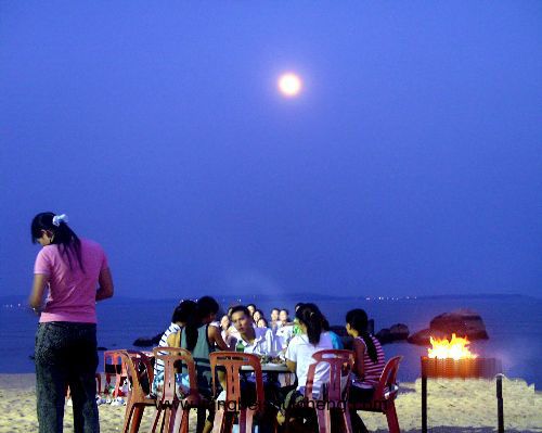 而云南傣族在中秋之夜,同樣盛行“拜月”風俗。傣族傳說,月亮是天皇第三個兒子巖尖變的。巖尖是個英勇剛強的青年,他曾率領(lǐng)傣族人民打敗過敵人,贏得了傣族鄉(xiāng)親的愛戴。后來,他不幸死后,變成了月亮,升向天空,繼續(xù)發(fā)出柔和的月光,在黑暗中給傣族人民帶來光明。每逢中秋節(jié)這天,小伙子一清早就帶上火藥槍上山打火雀、野雞,獵取節(jié)日野味。姑娘、媳婦們忙著到湖邊,池塘里抓魚。他們都忙著準備節(jié)日的晚餐。老阿媽則忙著舂糯米,做大小不同的食物,四只桌角上各放一個糯米圓餅,每個餅上插一炷冷香。待到月亮從山林上空一升起來,就點燃冷香,全家大小開始“拜月”。然后,對空鳴放火藥槍,以示對英雄巖尖的敬意。最后,全家老小歡樂地圍坐在小方桌旁,品嘗食物,談笑賞月,盡興方散。