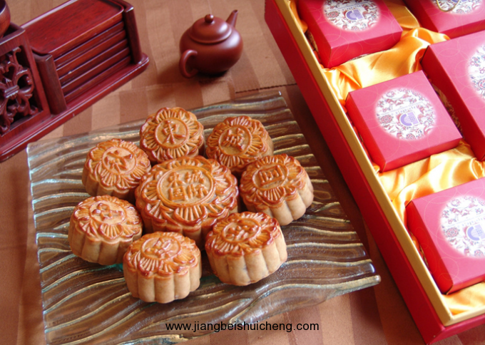 古時漢族的中秋宴俗,以宮廷最為精雅。如明代宮廷時興吃螃蟹。螃蟹用蒲包蒸熟后,眾人圍坐品嘗,佐以酒醋。食畢飲蘇葉湯,并用之洗手。宴桌區(qū)周,擺滿鮮花、大石榴以及其他時鮮,演出中秋的神話戲曲。清宮多在某一院內(nèi)向東放一架屏風,屏風兩側(cè)擱置雞冠花、毛豆技、芋頭、花生、蘿卜、鮮藕。屏風前設(shè)一張八仙桌,上置一個特大的月餅,四周綴滿糕點和瓜果。祭月完畢,按皇家人口將月餅切作若干塊,每人象征性地嘗一口,名曰“吃團圓餅”。清宮月餅之大,令人難以想象。像末代皇帝溥儀賞給總管內(nèi)務大臣紹英的一個月餅,便是“徑約二尺許,重約二十斤”。