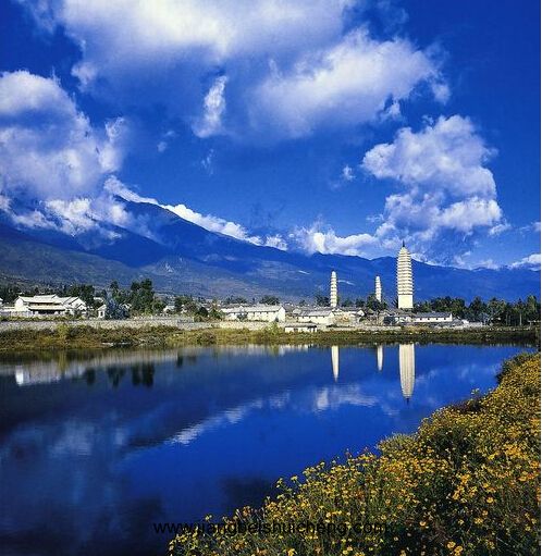 崇圣寺三塔和三塔倒影公園互為添輝,相與增色,從而成為最能代表大理形象的重要人文景觀。倒影公園最有特點的是池水碧綠如玉、清澈見底、浪不驚、平如鏡,三塔倒影清晰,令人嘆為觀止。角度不同,倒影形態(tài)亦隨之各異,是攝三塔最佳場所。在冬季,整座蒼山銀妝素裹,三塔倒影更加美麗迷人。正如清代楊炳锃《三塔倒影》所贊“佛都勝概肇中堂,三塔嶙嶙自放光。蒼麓湖蟠倒影,此中幻相說空王。