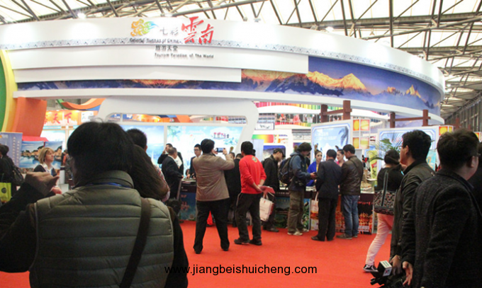 例如:作為下一屆中國國際旅交會的主辦地云南(由上海與云南輪流主辦),此次重點突出智慧旅游與民族元素兩大主題。展臺設計更是匠心別具,在設計上,大量采用孔雀、壁照等極富云南少數(shù)民文化元素的符號,特別是展區(qū)穹頂集中展示云南26個少數(shù)民族,一眼望去就像一個開滿26朵民族之花的花環(huán)。