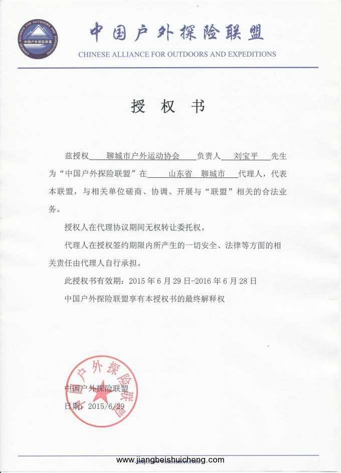 劉寶平先生成為“中國(guó)戶外探險(xiǎn)聯(lián)盟”聊城市代理人!