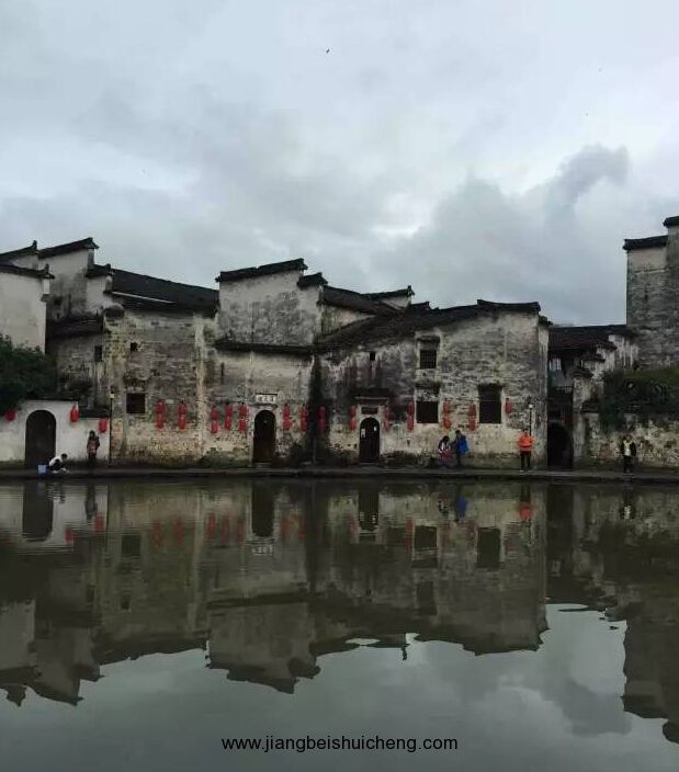 宏村為:山為牛頭,樹為角,屋為牛身,橋為腳”的牛形村落。