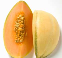 甜瓜又稱(chēng)甘瓜或香瓜。它是夏令消暑瓜果,其營(yíng)養(yǎng)價(jià)值可與西瓜媲美。據(jù)測(cè)定,甜瓜除了水分和蛋白質(zhì)的含量低于西瓜外,其他營(yíng)養(yǎng)成分均不少于西瓜,而芳香物質(zhì)、礦物質(zhì)、糖分和維生素C的含量則明顯高于西瓜。祖國(guó)醫(yī)學(xué)確認(rèn)甜瓜具有“消暑熱,解煩渴,利小便”的顯著功效。因甜瓜性寒,有吐血、咳血、十二指腸及胃潰瘍、慢性腸炎、脾胃虛寒、寒積腹脹或腹痛腹瀉、小便頻多、心臟病等人慎用或忌用。正常健康的人也不宜大量常吃,因甜瓜水分很多,吃太多在胃里會(huì)沖淡胃液,傷胃引起消化不良或腹痛腹瀉。