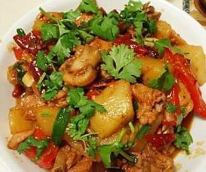 新疆大盤雞起源于90年代初期,主要是雞塊和土豆塊,配皮帶面烹飪而成,新疆大盤雞色彩鮮艷,有爽滑麻辣的雞肉和軟糯甜潤的土豆,辣中有香,粗中帶細。而且經(jīng)濟實惠,親朋聚會食用尚家。