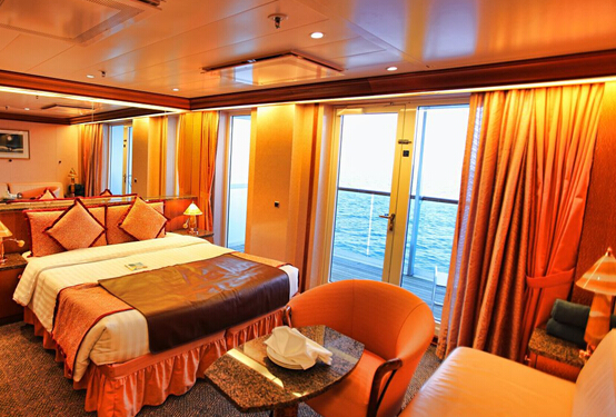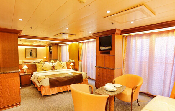 3、船上有一定數(shù)量的單人客艙,其價格扣除了一部分關稅。在某些船上有一定數(shù)量的雙人客艙,如支付差額,可用于單人。您在預定時,請核對可用性與價格。套房特惠除與所有客艙享有相同的服務和特色外,迷你套房和套房中的游客還享有如下特別優(yōu)惠:優(yōu)先登船-仆役服務-每天供應新鮮水果-套房內享用午餐和晚餐(應要求)-極可意浴缸-浴衣和拖鞋-應邀參加船長的高級雞尾酒會-可在點菜餐廳優(yōu)先預訂席位-可由仆役服務預約觀光活動(命運女神號與維多利亞號上的迷你套房僅有淋浴)。