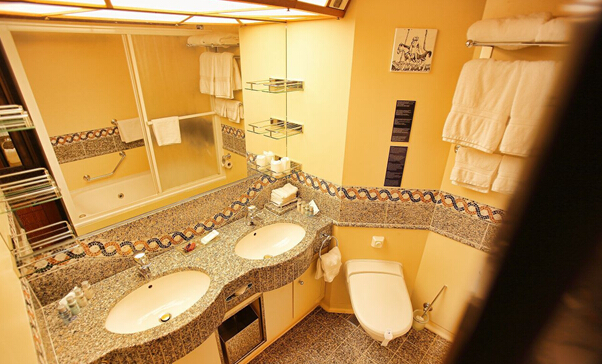 2、所有客艙均包括帶淋浴和衛(wèi)生間的私人盥洗室,并裝有空調、衛(wèi)星電視、電話、小冰箱、保險柜、吹風機和音樂播放設施。您客艙的服務員的姓名顯示在您客艙卡片上??团搩榷〞r提供及更換被褥和毛巾等織物。盥洗室提供香皂和沐浴露。出于環(huán)??紤]和為限制塑料制品的使用,如有需要,請向客艙服務員索取免費贈送的浴帽和瓶裝滋潤霜。