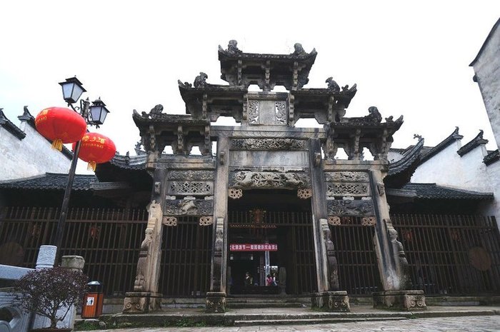 村中有祠堂、廟宇、橋梁各一百零八座;有孝子坊、貞節(jié)坊、官宦牌坊等十八座。古村老式民居鱗次櫛比,黝黑的屋瓦,淺灰的馬頭墻連成一片。大部分房子還都住人,可以像串門般地隨意進(jìn)入居民家中轉(zhuǎn)悠。主人早已習(xí)慣,自管自忙活著;多有善意的笑容,但并不以特別的關(guān)注,使人更感自在親切。