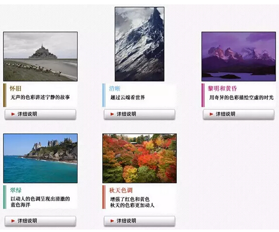 比如說,用風(fēng)光模式拍攝的照片,顏色比較鮮艷;懷舊模式拍攝的照片,顏色比較黯淡,影調(diào)對比強(qiáng)。