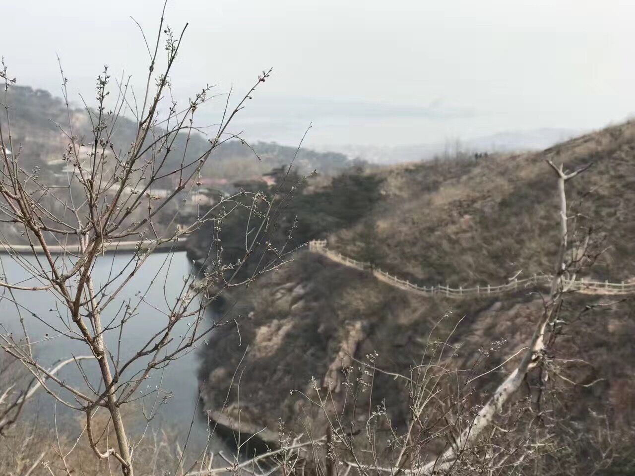 “高峽出平湖”,天綠湖有山東第一高湖之稱。天上人間、水天一色,蔚為壯觀、妙不可言,兩邊青山峻嶺,一座連一座,臨湖的一面就如刀削般,更為險(xiǎn)峻。