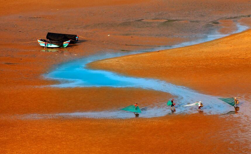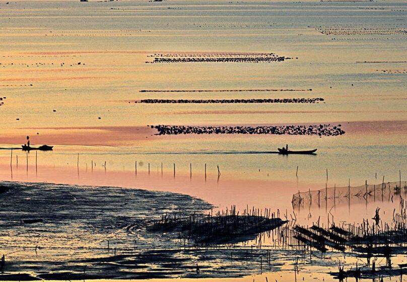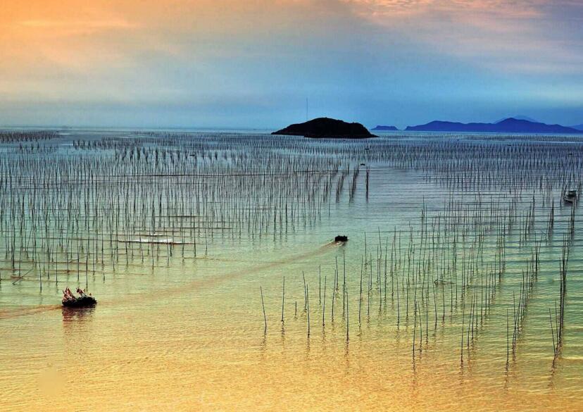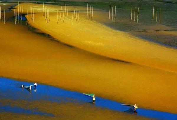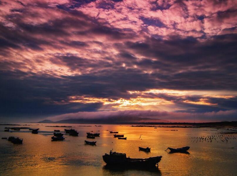 這里四季的潮汐變化、天光云影、原生態(tài)的海事活動(dòng),讓美麗神奇的海域瞬間迥異奇妙無比。那詭譎神秘的滿海竿影,那夢(mèng)幻般的海上家園,那鷗鳥掠過浪尖撲騰灘涂,那金色沙灘褐色礁叢,那港灣遠(yuǎn)空的一抹紅云束光,海上日出日落……都是那樣靈動(dòng)令奇絕。