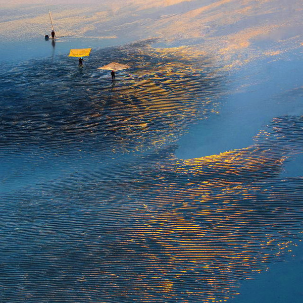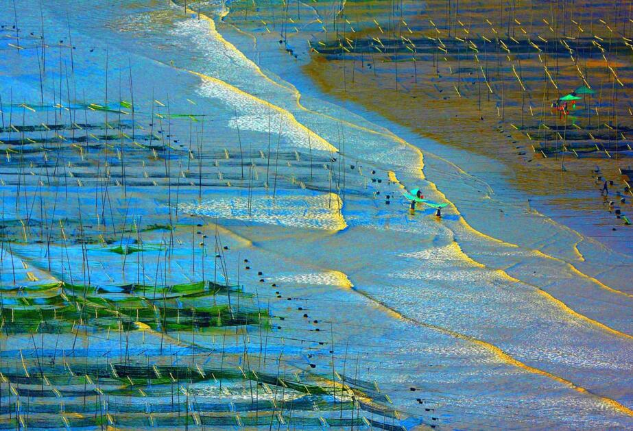 1.有人有景,營(yíng)造情景交融的場(chǎng)景。霞浦灘涂常年都有人在勞作,點(diǎn)綴在灘涂上的人遠(yuǎn)處看去雖然是星星點(diǎn)點(diǎn)的,但是往往是畫龍點(diǎn)睛之筆。