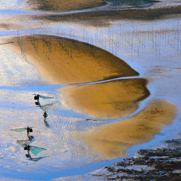 四、盡管拍攝霞浦灘涂各個(gè)焦段的鏡頭都能用上,但是拍得好的必然是擅于運(yùn)用長(zhǎng)焦鏡頭的人,灘涂變化的復(fù)雜性決定了只有長(zhǎng)鏡頭才能有可能在這一小片灘涂上做出一大篇“文章”來。