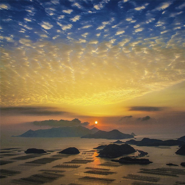 上午到【花竹】拍攝日出?;ㄖ襁€是觀賞“福瑤列島”全景的最佳地點(diǎn),尤其日出最為壯美,散射光照下,變幻莫測(cè)的色彩,展示出一種天人合一的壯美景觀。接著到福鼎的江邊村拍攝【八尺門】圍網(wǎng),漁民用于養(yǎng)殖螃蟹的竹竿和圍網(wǎng)形成各式的幾何圖形。
