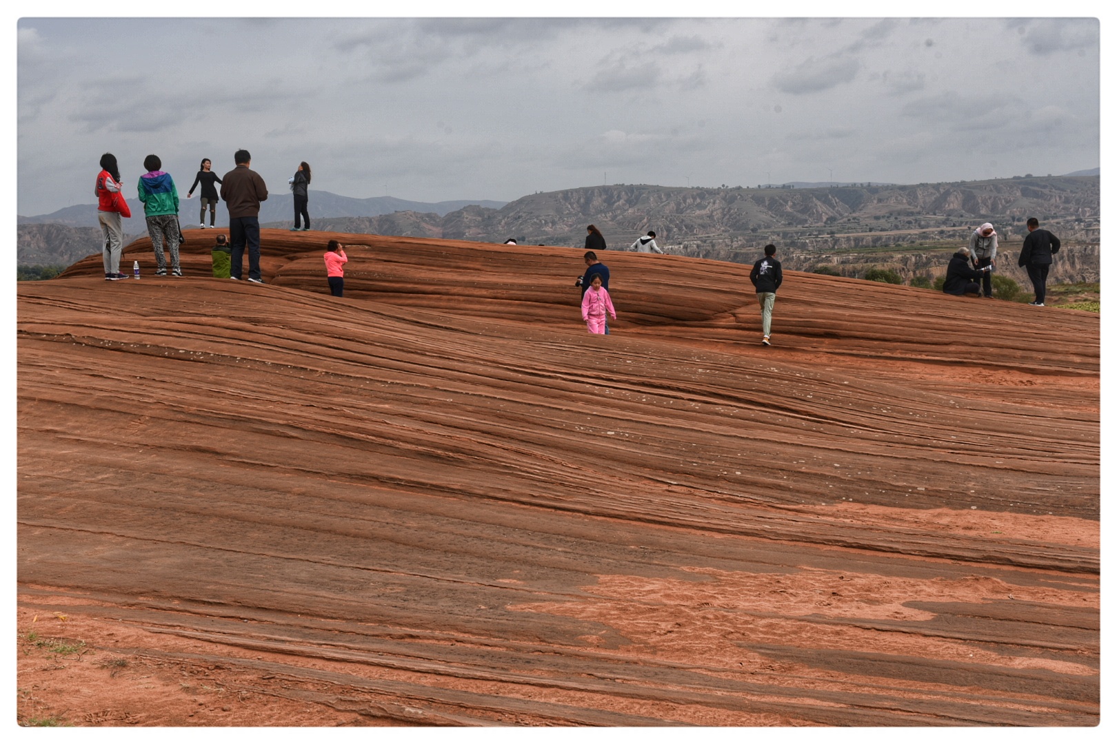 早起拍攝龍洲丹霞黃土高原的日出云海,早餐后拍攝龍洲丹霞地貌波浪谷奇觀。龍洲丹霞地貌其奇特的地貌和神奇的外觀令人嘆為觀止。紋理線條很是清晰,像一層層的海浪,環(huán)繞著起伏的小山丘形成了差異的走向,赤色的沙石在周圍黃土高原的映襯下顯得色彩濃郁,驚艷奇絕。