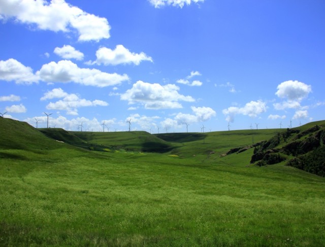 世界上保持完好的天然高山草甸草原,亞洲最大的風力發(fā)電廠,草質精良,牛羊成群,天然氧吧;也是典型的鮮花草甸草原,平均海拔2100多米,是世界少有且保持完好的天然草甸型草場,并確認十八種草種為珍稀草種,被譽為“仙境草原”。