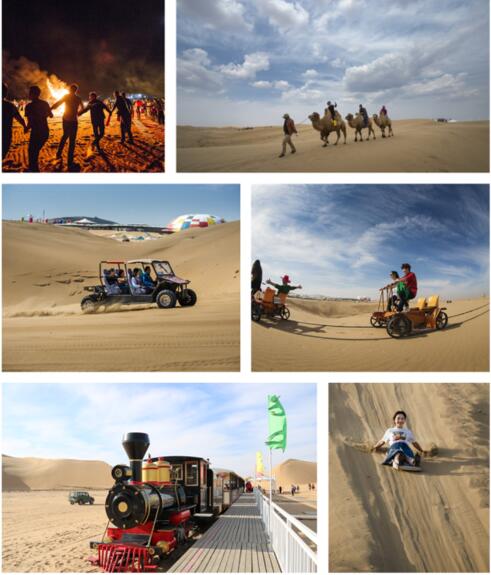 游覽【仙沙島】游玩沖浪車、騎駱駝、摩托車、卡丁車、高空滑索、軌道自行車、沙灘排球、沙灘足球等,盡享沙漠迪士尼帶來的無窮樂趣!(不玩不退;因天氣原因產生不可抗拒因素,不玩不退)