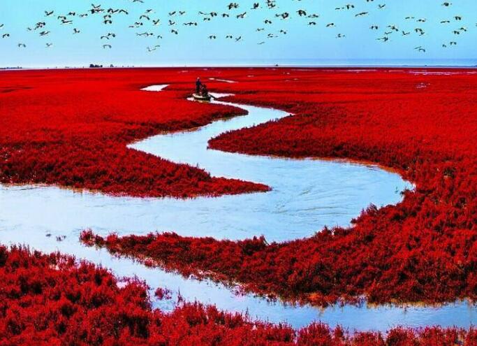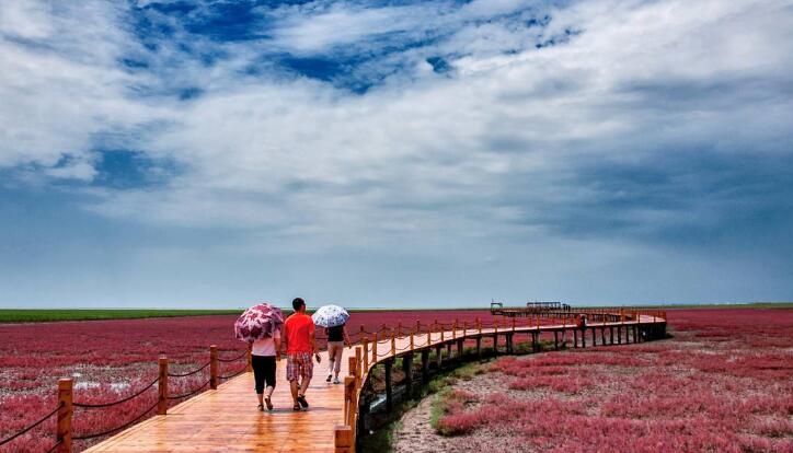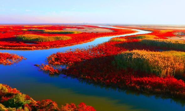 游覽后午餐,乘車前往我國北方最大的濱海濕地城市—盤錦市,抵達盤錦后前往游覽【盤錦紅海灘廊道】(游覽約3小時),紅海灘地處遼河三角洲濕地,位于盤錦市西南海濱,是由大片紅色的堿蓬草形成的著名濕地,紅海灘國家風景廊道是紅海灘面積最大的景區(qū),在這里你可以漫步于木棧道、看紅如熾焰的堿蓬草在海岸線上無限延伸,而紅海灘遠處的油井在夕陽下更是一副迷人的畫卷,秋天來此還能看到金黃色的稻田與紅海灘相呼應,以及成群的候鳥展翅于灘涂的深處,游覽后晚餐,晚餐品嘗盤錦稻香河蟹宴,晚餐后入住酒店休息。