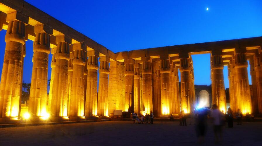 參觀后返回游輪,前往盧克索,途經(jīng)伊斯納水閘門,此時會有很多當(dāng)?shù)刎溬u的小船靠近游輪,非常熱鬧。抵達(dá)盧克索后,游輪靠岸停泊,乘車前往參觀盧克索神廟,習(xí)近平主席訪問埃及時,埃及總統(tǒng)就在這里接待。晚上燈光一打,盧克索神廟不同凡響,像希臘神殿,像歐洲的廣場,氣勢十足又安靜莊嚴(yán),天空孤星伴月,千年歷史的積淀讓人安詳寧靜。參觀結(jié)束后返回游輪休息。