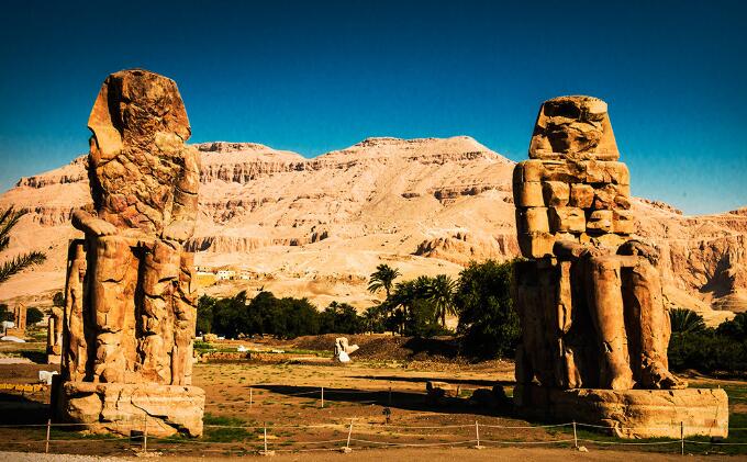 上午:乘坐尼羅河上的游船前往東岸參觀世界最大的神廟群—卡爾奈克神廟群。孟農(nóng)神像(游覽 10分鐘)