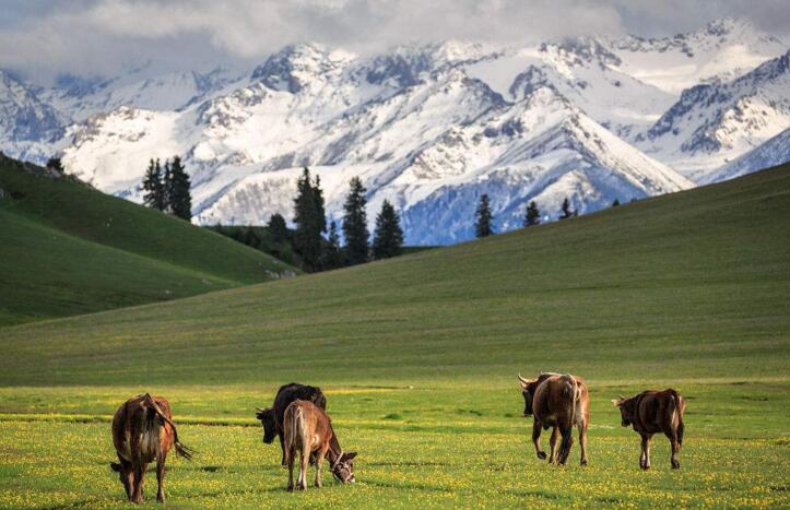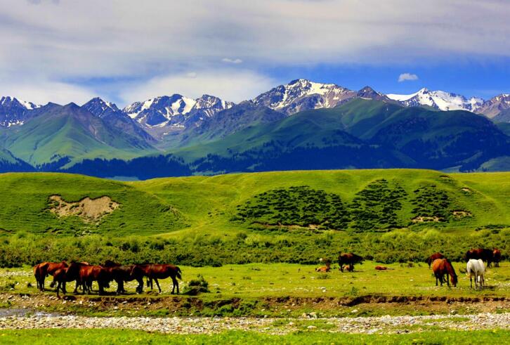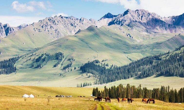 早餐后,前往特克斯。新疆伊犁谷地西的特克斯,位于昭蘇縣境內(nèi),是新疆最美的草原,這里的哈薩克族、柯?tīng)柨俗巫屣L(fēng)情獨(dú)特,山清水秀,人文濃郁。特克斯縣縣城是中國(guó)唯一的【八卦城】,建筑風(fēng)格獨(dú)特,后游覽【喀拉峻草原】位于特克斯縣南喀拉峻山,距縣城直線距離約30公里,有簡(jiǎn)易公路相通。海拔1600~2800,喀拉峻系哈薩克語(yǔ),意為"黑色莽原"。喀拉峻草原風(fēng)景獨(dú)特,草豐林茂,主要指闊克蘇河以東,喀甫薩郎河以南,以喀拉峻山為主體,南接瓊庫(kù)什臺(tái),包括瓊庫(kù)什臺(tái),克什庫(kù)什臺(tái)和庫(kù)爾代峽谷,面積約759平方公里。喀拉峻草原是典型的山地草甸類型草原,喀拉峻草原地勢(shì)起伏和緩,視野開(kāi)闊,草原5~9月碧草茵茵,盛夏之際雨水豐富、日照充足,各種野花恰似點(diǎn)點(diǎn)繁星開(kāi)遍山野。夏季來(lái)到喀拉峻草原,如同步入花的海洋,暑氣頓消。晚住昭蘇是天馬——伊犁馬的故鄉(xiāng)。