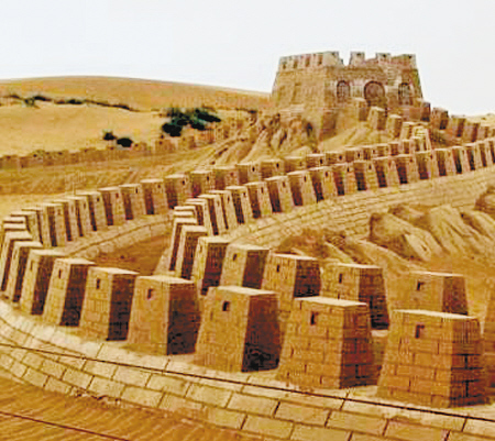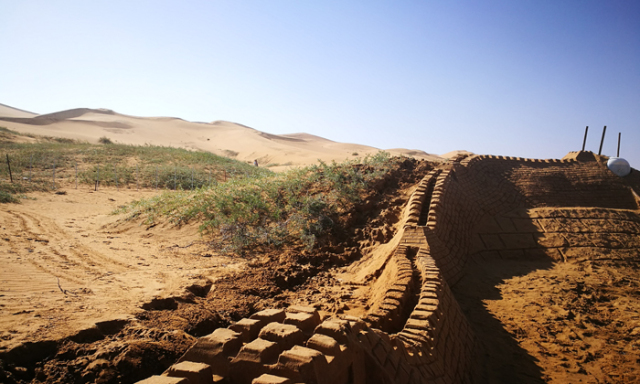 為抵抗侵略,明長(zhǎng)城部分地方,建立在了沙漠上。這是一項(xiàng)偉大的工艱巨的任務(wù),氣候的炎熱和細(xì)柔的沙子,挑戰(zhàn)邀請(qǐng)以及發(fā)出,使命必達(dá)!