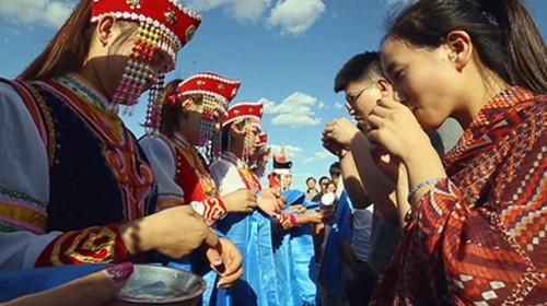 【歡迎儀式】經(jīng)過一路愉快的旅程,我們終于來到了美麗的安固里草原,蒙古族小伙和姑娘們載歌載舞,迎接我們的到來,并為每位營員獻上潔白的哈達,遞上蒙古人高的歡迎禮節(jié)——“下馬酒”。