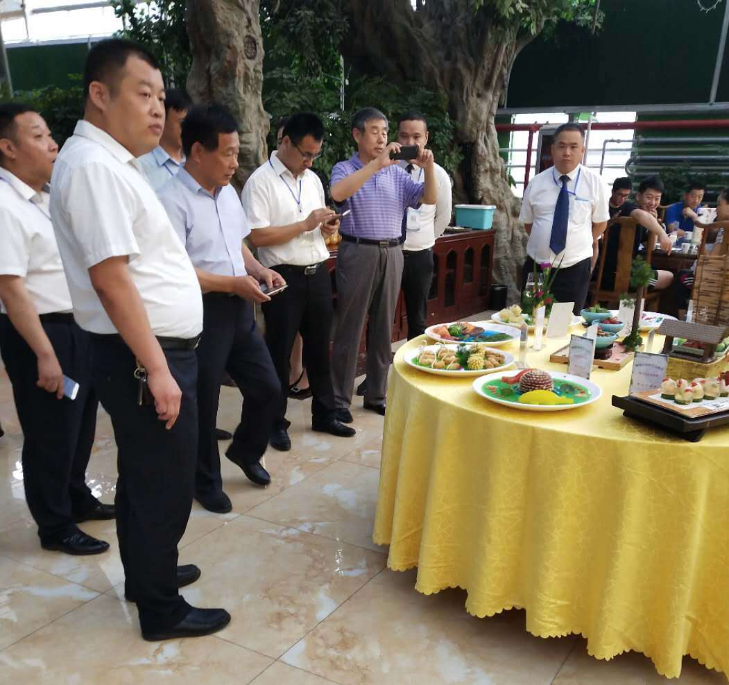 莘州集團旗下中農酒店管理公司總經理李傳輝,誠邀各位參會嘉賓參觀生態(tài)園廚藝交流會,介紹生態(tài)園特色,欣賞精美菜品。各位參展嘉賓為廚藝交流會表示贊許。