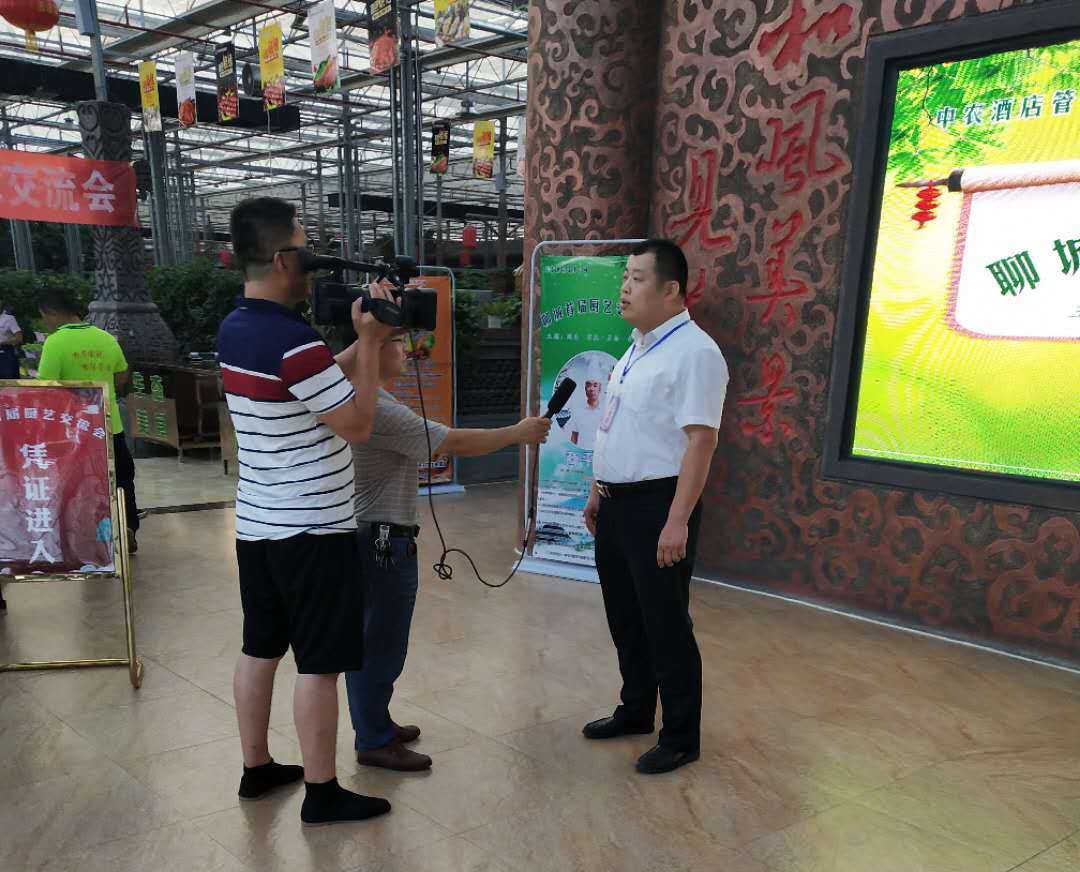 中農酒店管理公司總經理李傳輝、現代農業(yè)生態(tài)園餐廳總廚商平勇在活動現場,接受莘縣電視臺記者專訪。李總向記者詳細闡述組織廚藝交流會的意義,這是聊城市同行餐飲人的集會,有利于增進互相的了解,促進共同進步,共創(chuàng)更加輝煌的酒店餐飲業(yè)。商廚向記者介紹了餐飲中菜品的相關情況。