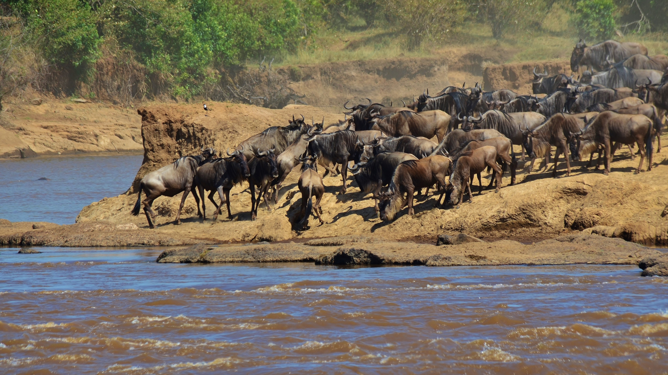 在肯尼亞可以看到最壯觀的天國之渡,因?yàn)榭夏醽喚硟?nèi)的馬拉河河岸很陡峭,河床也很窄,河水很急很深,場景非常壯觀。但與此同時(shí),你也要忍受跟無數(shù)的人擁擠在一起觀看這壯觀的場景,如果想要拍照片,大量的人群會(huì)讓你很難取景。