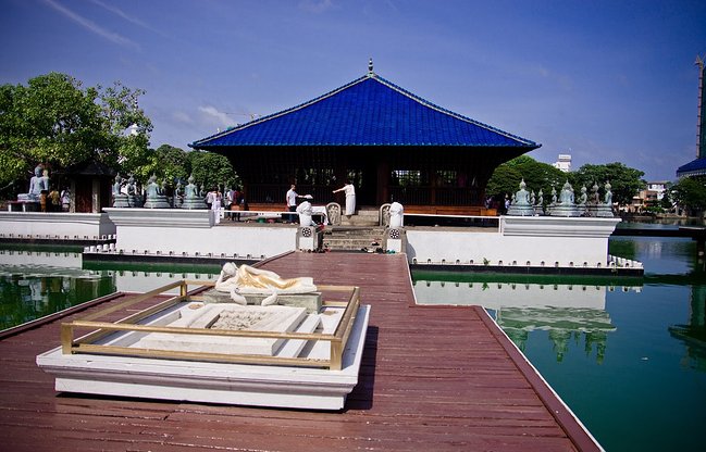 【佛牙寺】佛牙寺位于圣城康提中心的美麗康提湖邊,建于17-18世紀(jì)。珍藏著斯里蘭卡的鎮(zhèn)國之寶-佛祖釋迦牟尼僅存于世的兩顆靈牙舍利其中的一顆。佛牙寺是整個(gè)宮殿建筑群的一個(gè)組成部分,四周有圍繞的護(hù)城河,角樓護(hù)衛(wèi)。還有4個(gè)守護(hù)神的神廟,包括那特哈神廟(聯(lián)合國世界文化遺產(chǎn)遺址),卡塔臘加碼神廟,瓦斯怒神廟和帕特提尼神廟。佛牙寺是佛教世界神圣的殿堂。據(jù)資料記載,早期由維馬拉達(dá)王修建,現(xiàn)在的佛牙寺是克里蒂斯里亞西哈王時(shí)期所建。