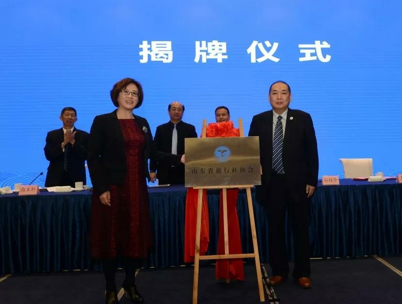 隨后,中國(guó)旅行社協(xié)會(huì)孫桂珍秘書(shū)長(zhǎng)與新任王延輝會(huì)長(zhǎng)共同為山東省旅行社協(xié)會(huì)揭牌。
