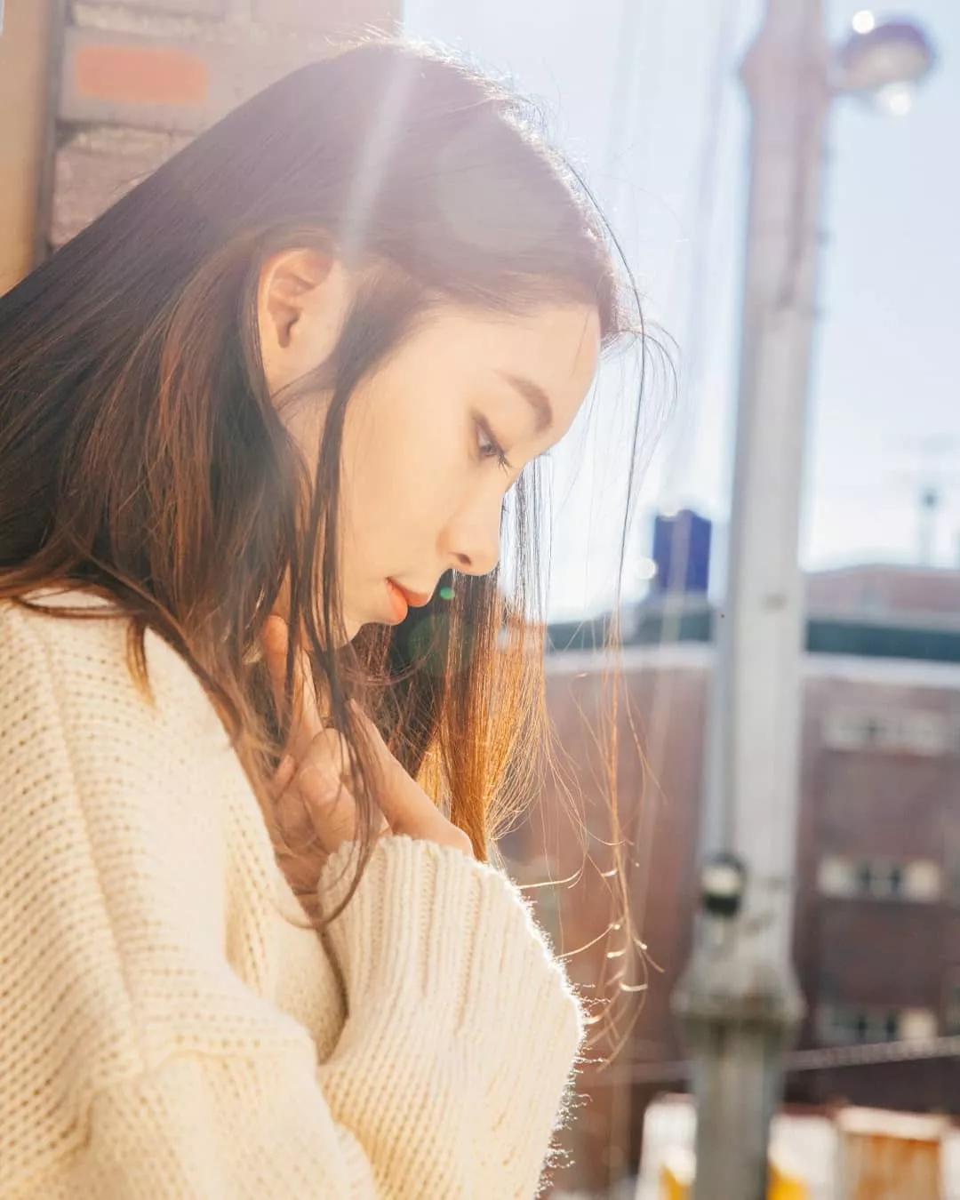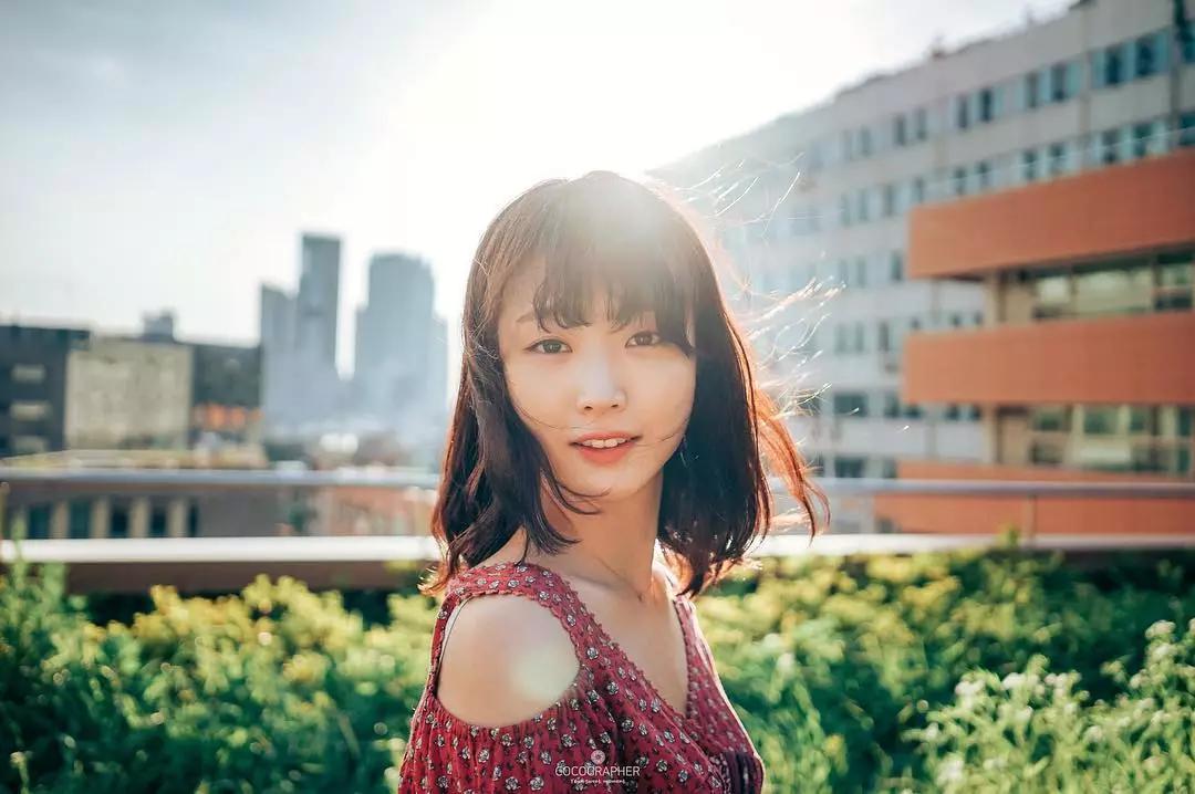 讓妹子的頭部遮擋身后太陽的部分,或者模特用手遮擋部分光線,減弱逆光的強(qiáng)度,畫面更有朦朧的意境。
