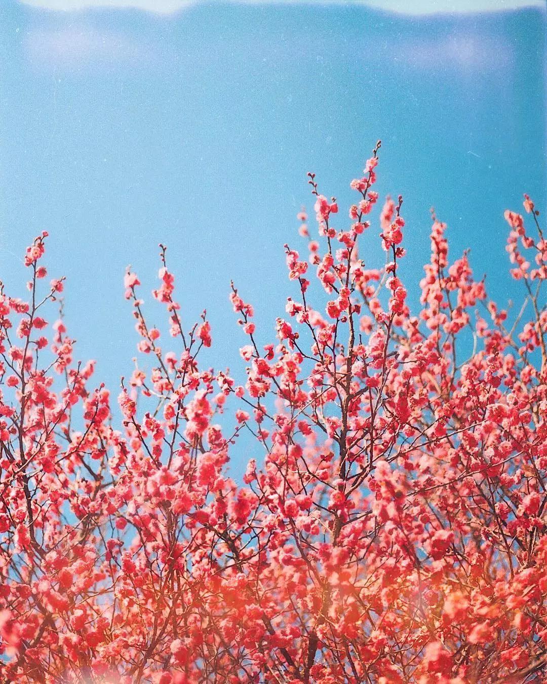 留白簡(jiǎn)直是拍照的萬能公式,不管什么都可以這樣拍。畫面不需要太多元素,找好角度,多把開花的樹枝處在畫面的對(duì)角處,采用對(duì)角線構(gòu)圖。