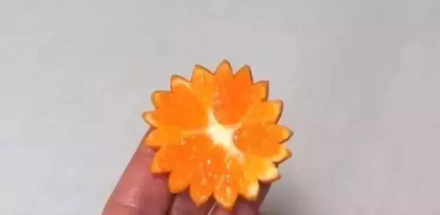 1.先把橙子頂部去掉,然后先切3mm厚度的橙片,切至2/3處收刀,