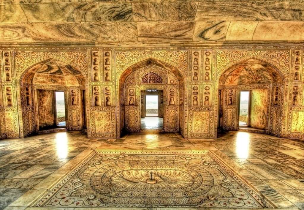 午餐后驅(qū)車(chē)前往阿格拉堡,它距泰姬陵約 1.5 公里,全部采用紅砂巖建造而成,故又稱紅堡,與首都德里的紅堡齊名。這座方圓 38 萬(wàn)平方米的宮堡,外形非常雄偉壯觀,城內(nèi)的宮殿,雖經(jīng)歷漫長(zhǎng)的歲月,多已失修,但畫(huà)梁和墻壁上精巧的雕刻與設(shè)計(jì),仍隱約保存著昔日富麗堂皇的風(fēng)貌,于 1983 年被列入世界遺產(chǎn)名錄,夜宿阿格拉。