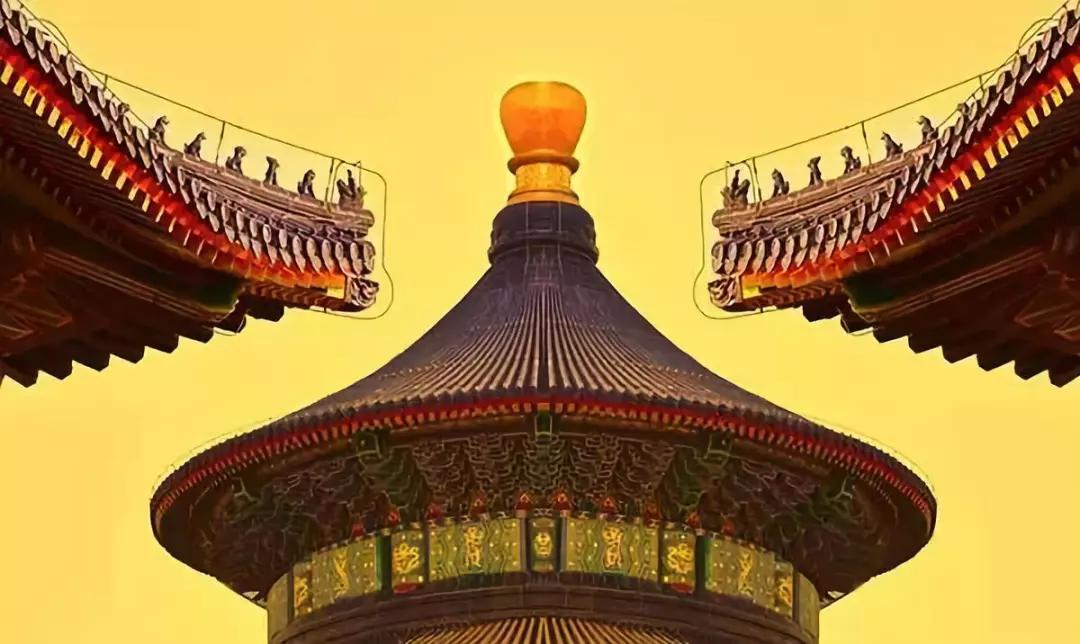 這幅作品將兩個(gè)屋檐和祈年殿的頂部構(gòu)成了完美對(duì)稱。