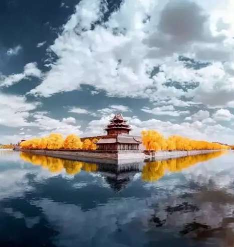 這張故宮角樓,利用天上的云朵,以及水面,讓建筑與倒影遙相呼應(yīng),清麗動(dòng)人,在云卷云舒中,展示著它的美麗。