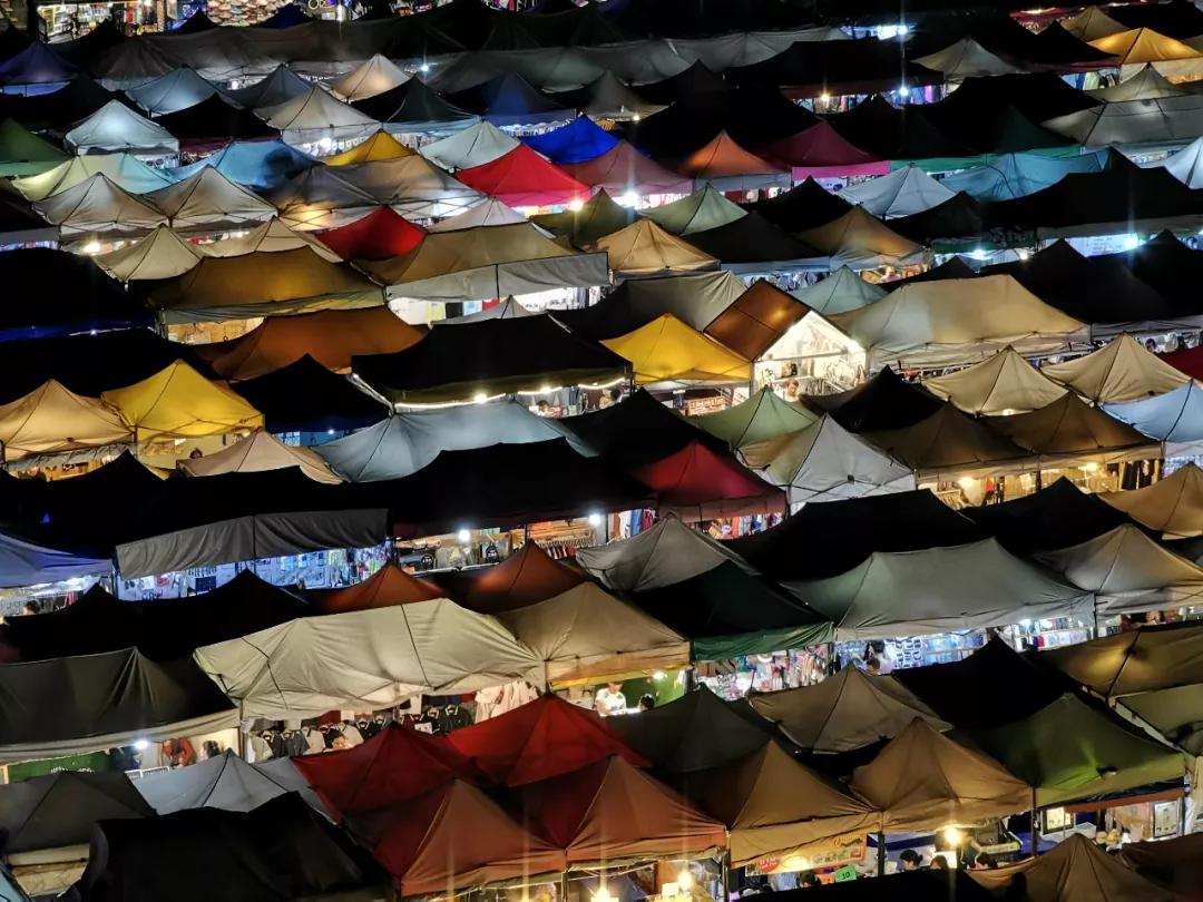 不同色彩的帳篷在燈光下變得絢麗多彩,畫(huà)面內(nèi)容豐富