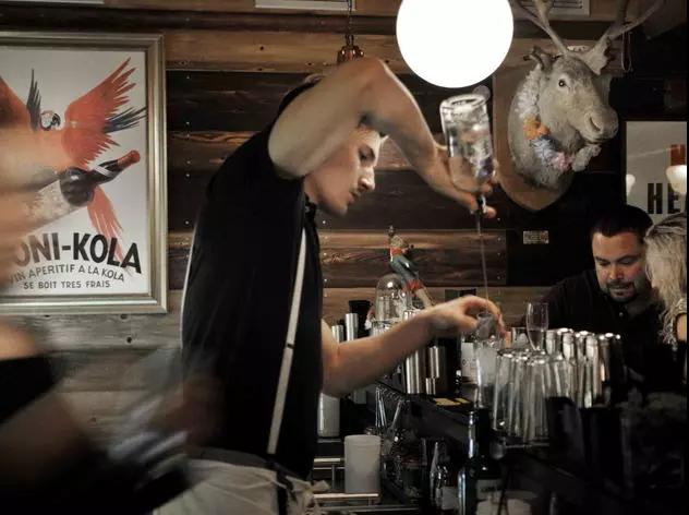 入口處有一個(gè)陡峭的樓梯和極低的天花板,小心不要碰到頭部喲。木質(zhì)的裝修風(fēng)格,有著厚重古樸的時(shí)代感。調(diào)酒師的技藝高超,有時(shí)他們一人同時(shí)管理著幾個(gè)單子,卻絲毫沒(méi)有出差錯(cuò)。酒的名字特別新奇,看到就讓人好奇它的味道,忍不住想要嘗試一下。