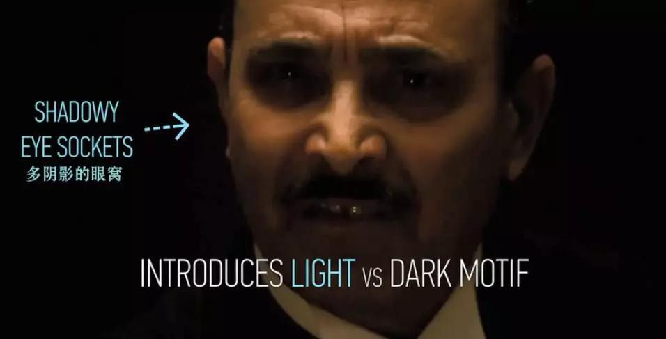 在柯里昂家族的陰影世界中,光亮與黑暗的強烈沖突具象化了每個人內(nèi)心善良與邪惡的斗爭。(LIGHT VS DARK = GOOD VS EVIL)