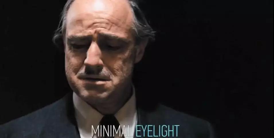 出于對白蘭度特效妝容的強調(diào),威利斯從他的上方打光,經(jīng)常提供最小程度的眼部打光(Eyelight)。