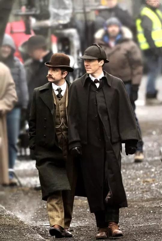 毫無疑問華生選擇了乖乖的伊頓領(lǐng),非常的文藝小清新,適合他的賣萌氣質(zhì);反觀夏洛克選擇了百搭的溫莎領(lǐng),且配以領(lǐng)結(jié),不糾結(jié)。至于男神們都穿什么過寒冬?在北方冬季,西裝內(nèi)一件薄薄的花呢馬甲,外面再加一件大衣,就足以抵擋所有嚴(yán)寒。