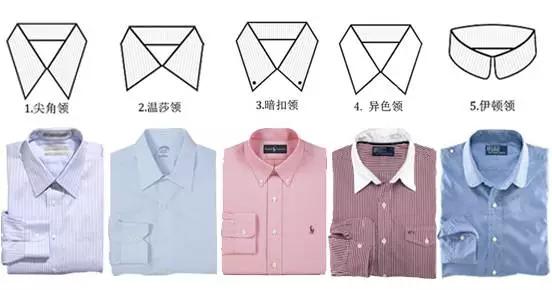 西裝內(nèi)的襯衫+領(lǐng)帶(領(lǐng)結(jié)、圍巾)也有講究,常見的襯衫領(lǐng)有下面幾種: